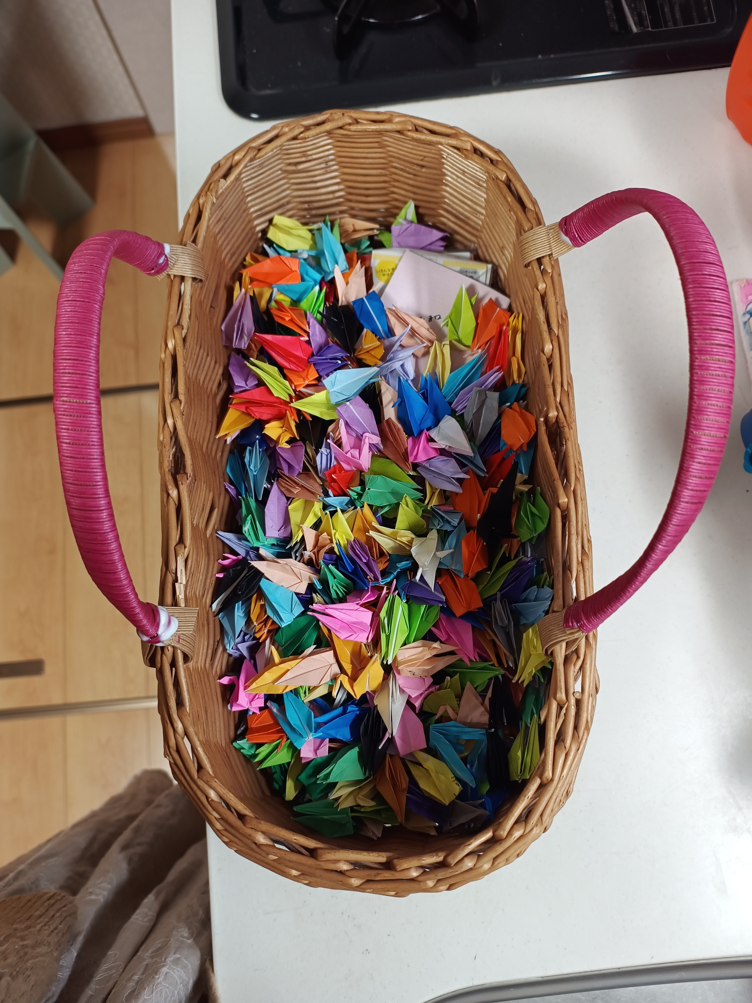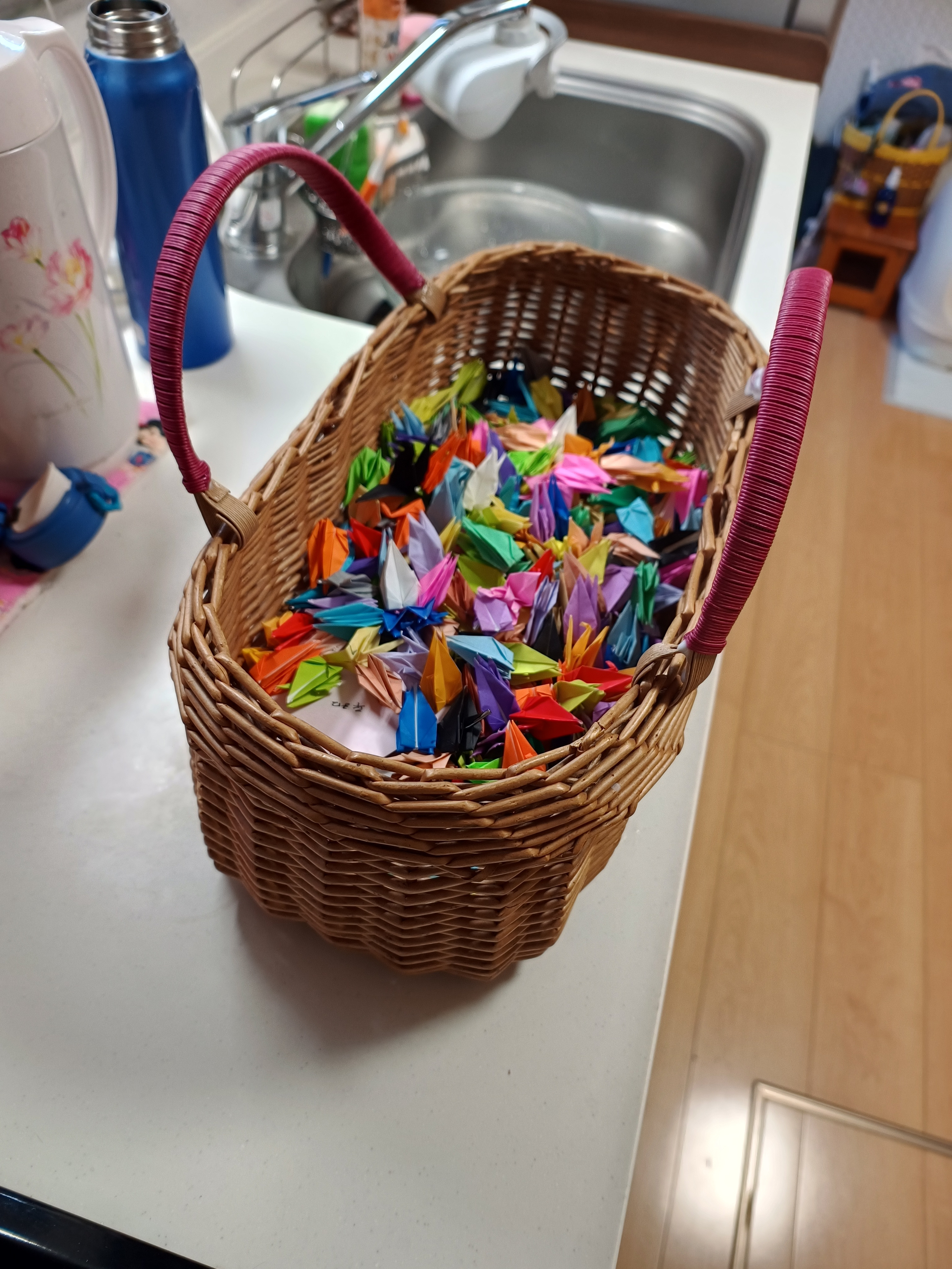 クラフトバンドのちーさんから、購入した可愛い籠。持ち手の部分を、固定式から可動式に変えてもらったのが去年の暮れですした。取り外した持ち手は、そのまま頂いていつか使うかなぁと放置。