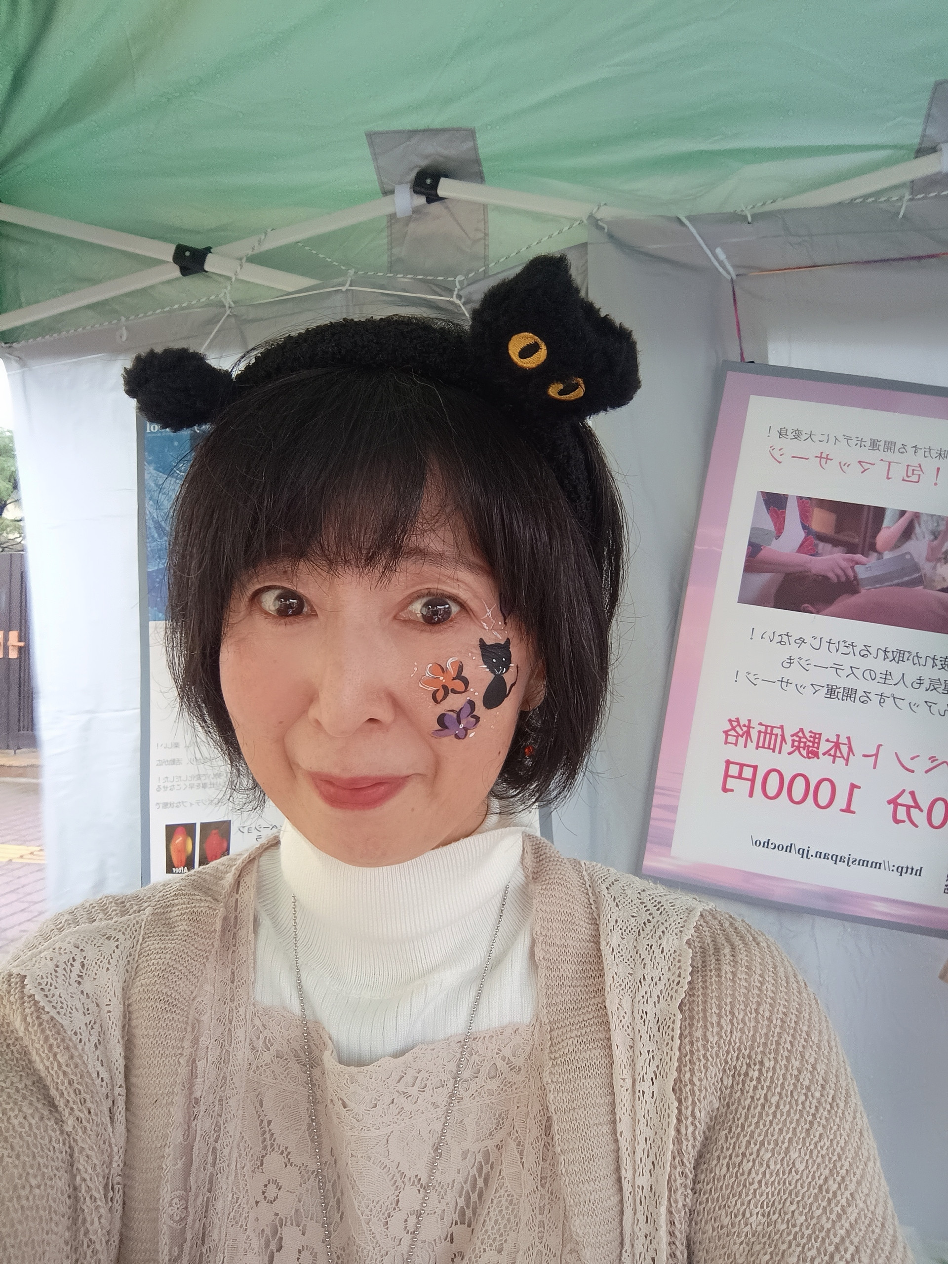 そして、ハロウィンのペイントに興味を惹かれ、右のほっぺにペイントしていただきました😆小じわにペイント、描きづらかったかなぁ🤣
