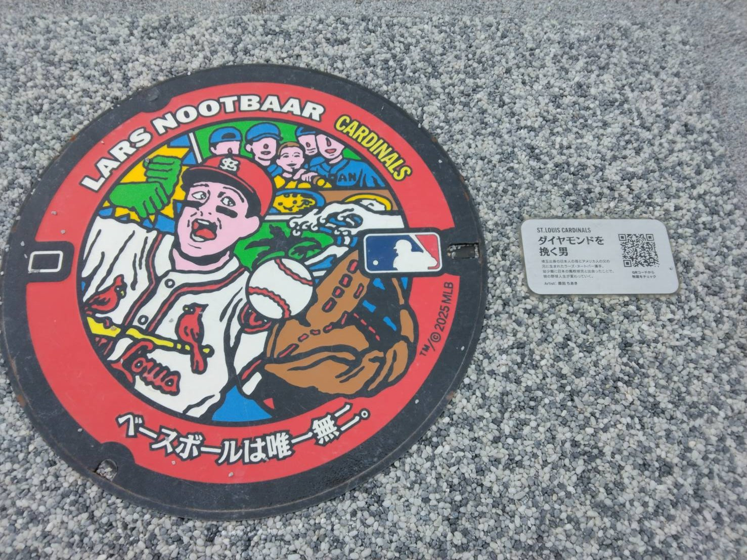 Tさんは、東松山市の、のぼりの一つ、『ヌートバー選手のマンホール』にご興味があったとのこと。