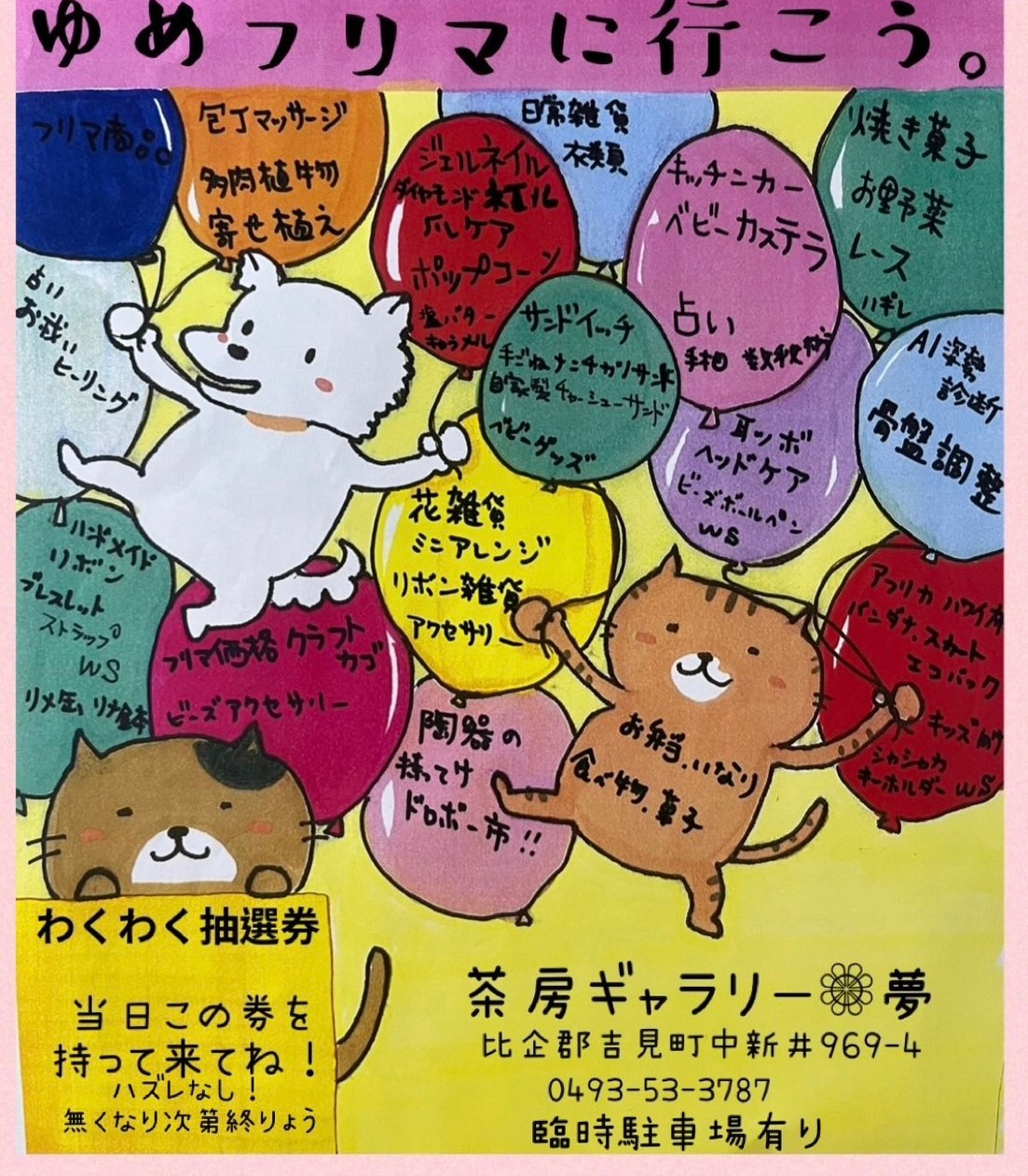 おなじみの茶房ギャラリーゆめさんちの広場のテント会場です。ワイワイと活気あふれる元気いっぱいのイベントです。雨天中止ですから、我こそは『晴れ女』~さん、ぜひご来場くださいませ。出店数がいっぱいの楽しいブース。キッチンカーさんも、きてますよ。ヒーリングハウスMaki SUN Chiは、占いとヒーリングをご提供します(⋈◍>◡<◍)。✧♡★★★DNAアクティベーション®20分または、TUREタロットリーディング30分10枚引のお客さまに、ルーンストーン占い無料ご提供します!