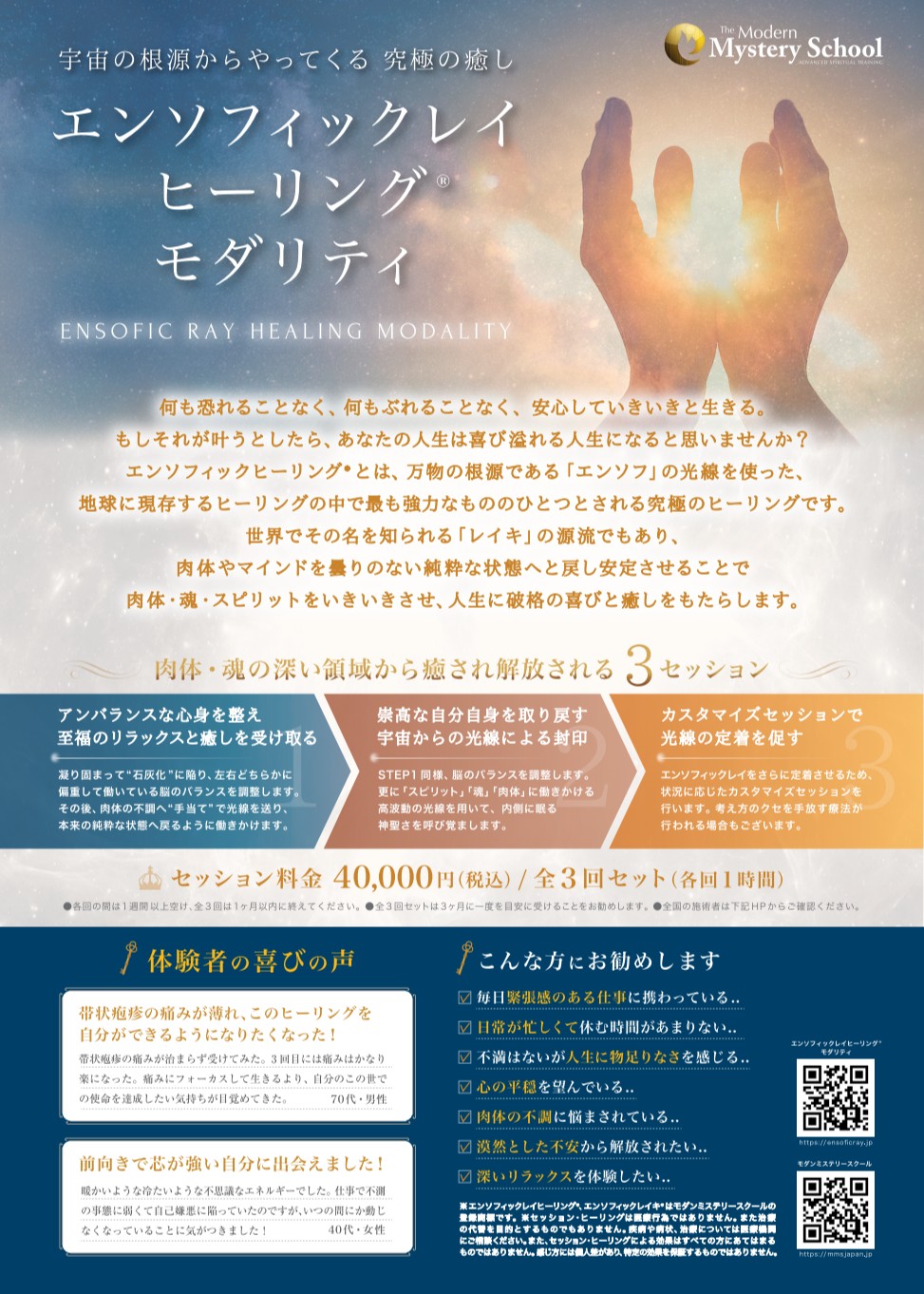 エンソフィックレイヒーリング60分×3回セット:¥40,000円(1回60分:15,000円)(税込)